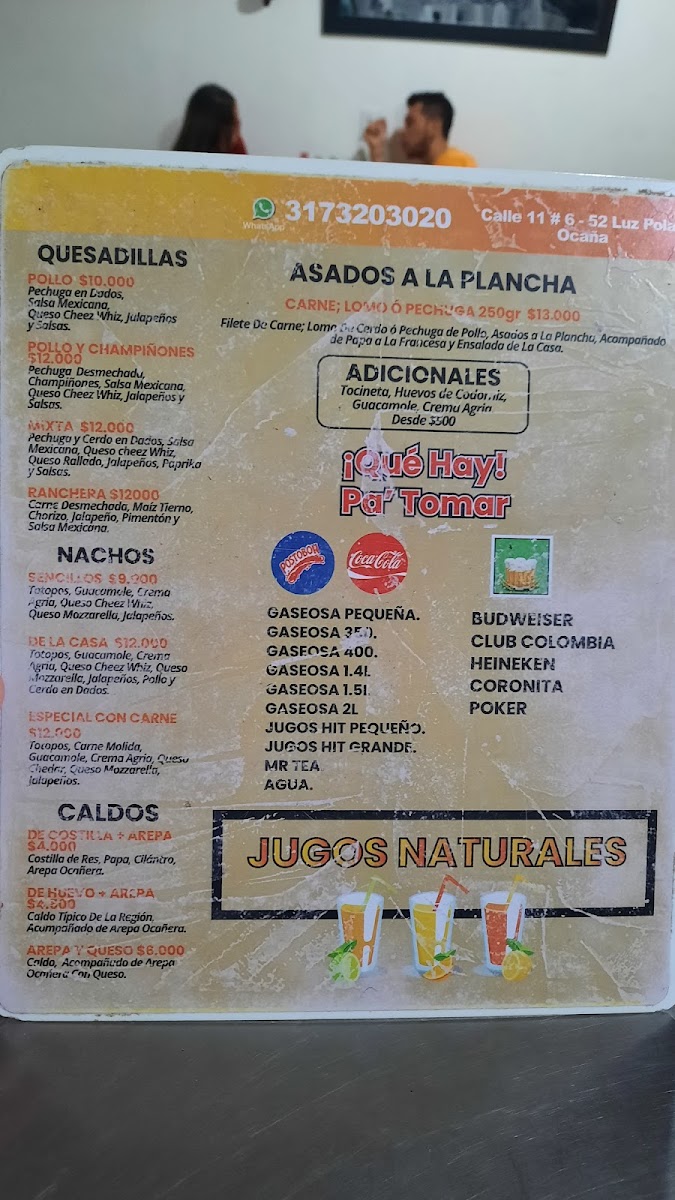 Introducing the menu at Que Hay Pa' Comer, a culinary gem nestled in Ocaña, Norte de Santander, this restaurant invites you to experience a delightful fusion of flavors. Known for its variety and excellent customer service, diners rave about the rich, authentic dishes that offer a taste of local culture. While popular and occasionally bustling, guests agree that the wait is well worth it.